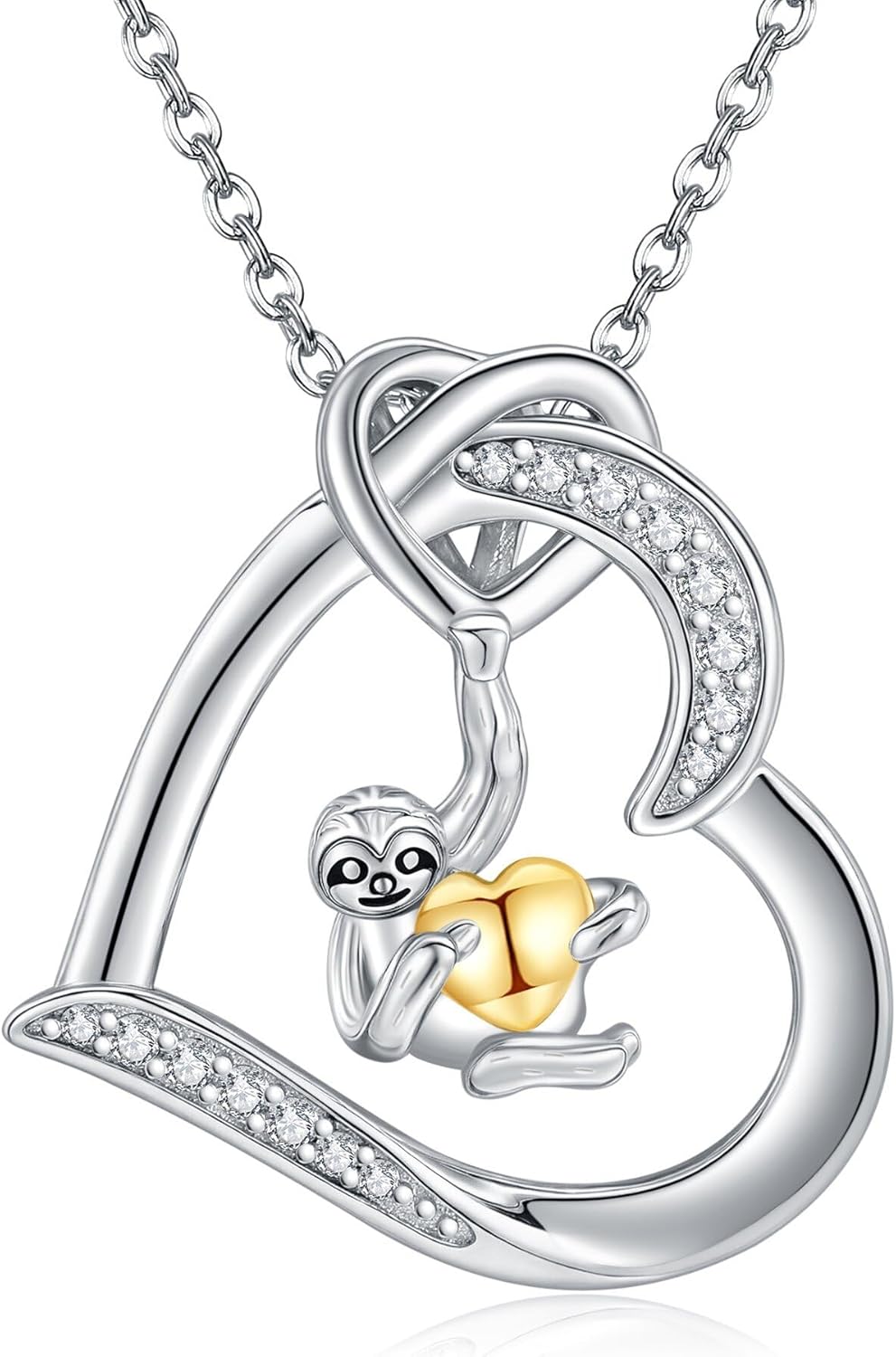 YAFEINI Heart Animal Necklace S925 Sterling Silver Hummingbird/Sloth/Dachshund/Turtle Pendant Necklaces Animal Jewelry Gifts for Women Mom Wife