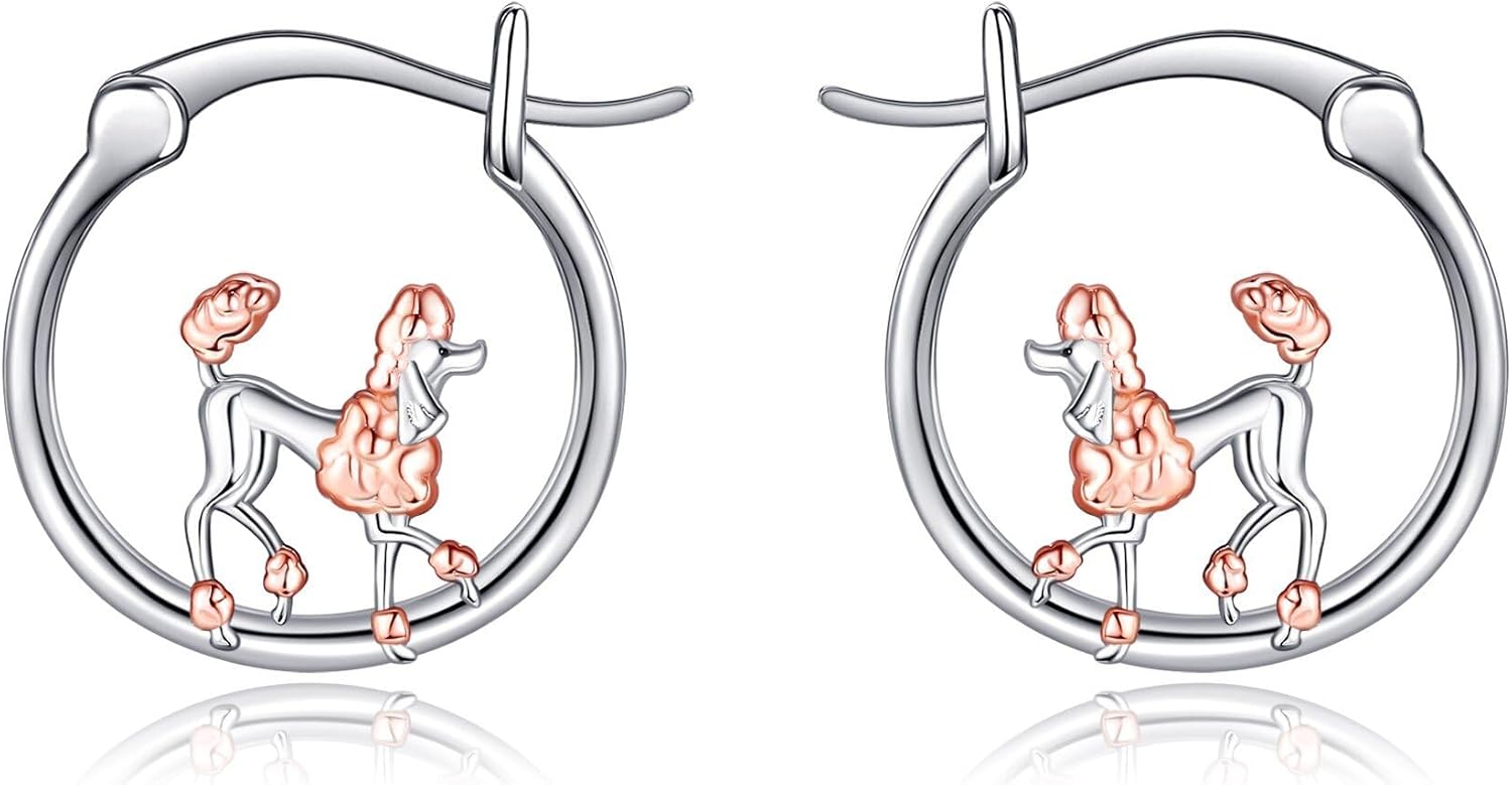 S925 Sterling Silver Poodle/Ferret/Fox/Axolotl/Yorkie/Panda/Orchid Hoop Earrings Cute Animal Jewelry For Women Man Christmas Gift