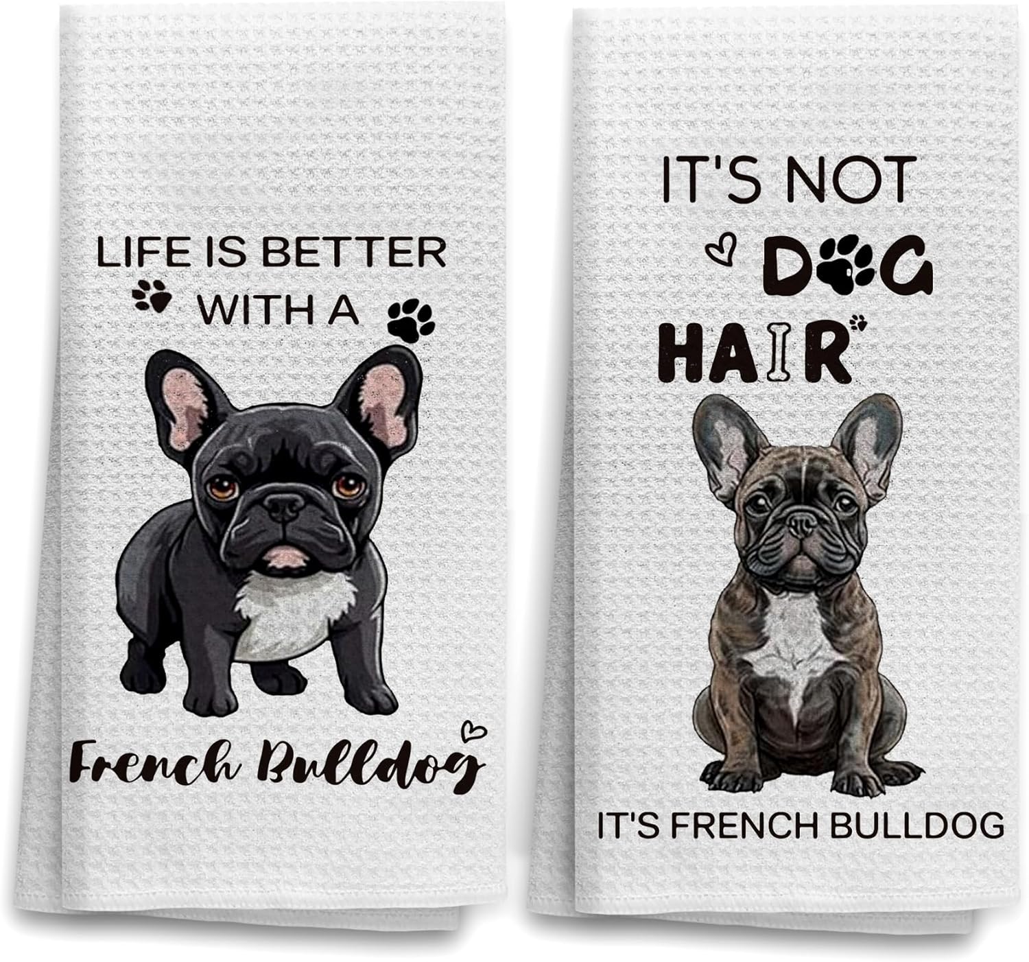 OHSUL Funny French Bulldog Kitchen Towels Set of 2, French Bulldog Gifts for Dog Lovers, Life is Better Hand Dish Towel, It's Not Dog Hair Decorative Hand Dish Towel for Kitchen Bathroom 16x24 Inch