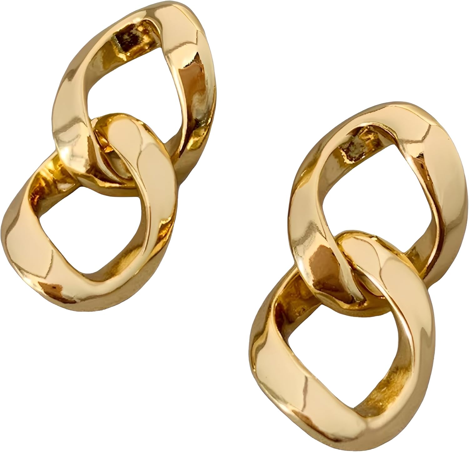 Double Hoop Earring Geometric Link Drop Dangle Earrings 18K Gold Plated Paperclip Earrings For Women With Sleek Shine