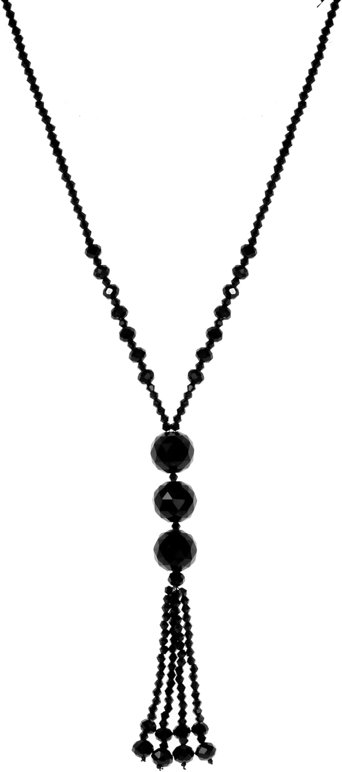 Boho Long Chic Tassel Pendant Necklace for Women Big Crystal Ball Pendant Y Necklace Hand Knotted Beaded Strands Fashion Lariat Jewelry Sweater Chain Jewelry Gift