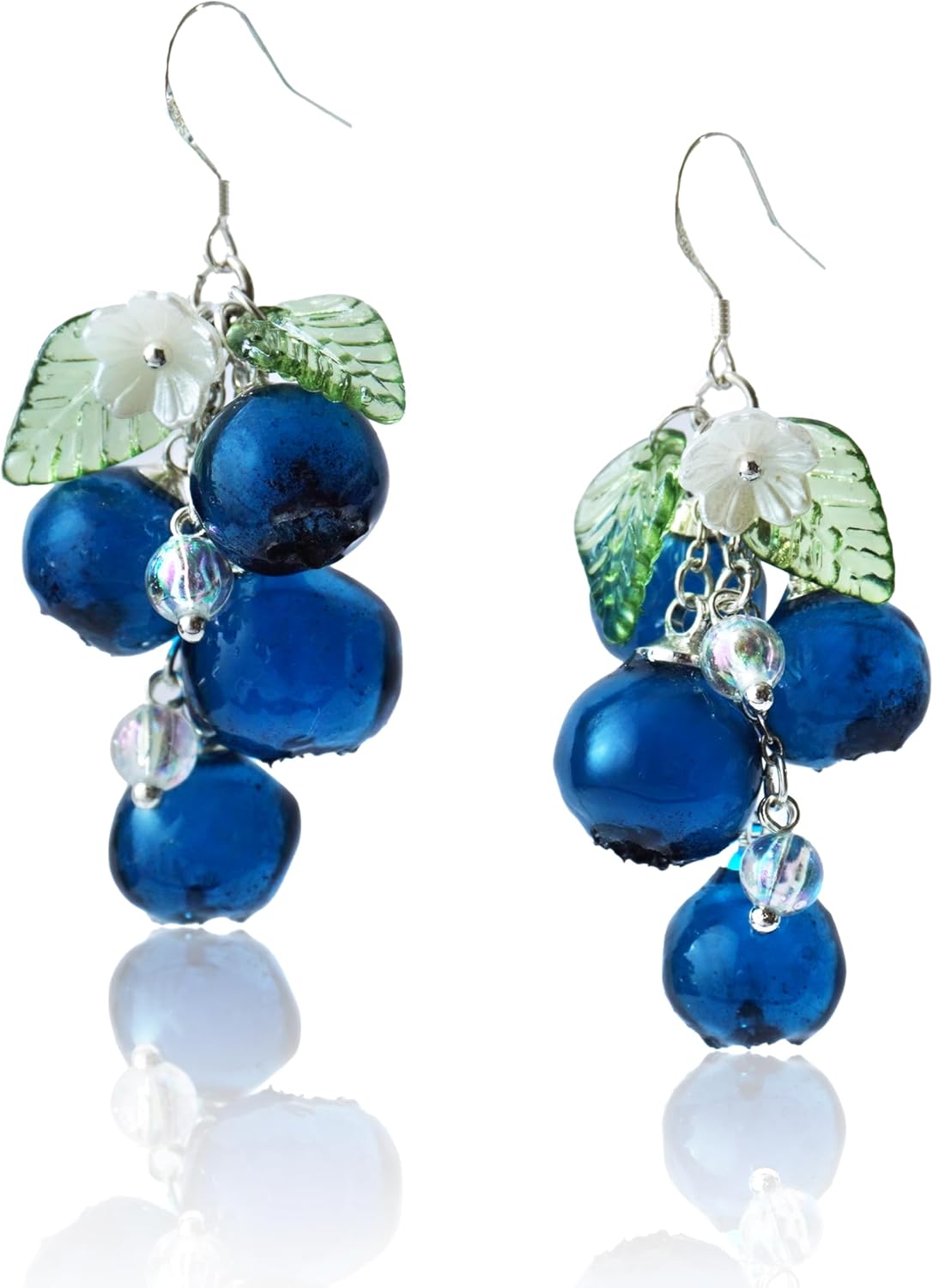 Nature-Inspired Handmade Blueberry Dangle Earrings –Cute Fruit Resin Earrings Hypoallergenic Lightweight Jewelry with Resin Blueberries | Sterling Silver | fruit earrings for women