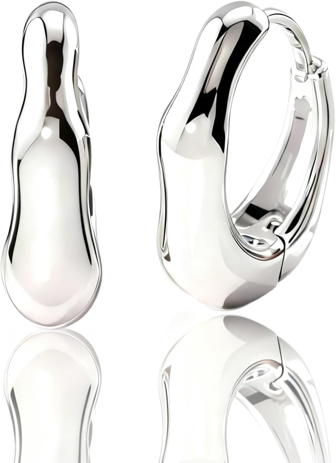 Tiny Dainty Gold & Silver Huggie Hoop Earrings for Women:Small Bamboo,Square,Twisted,Teardrop,U-Shaped Hoops, Mini Huggie Hoops in Champagne & White Gold Plated Hypoallergenic Lightweight