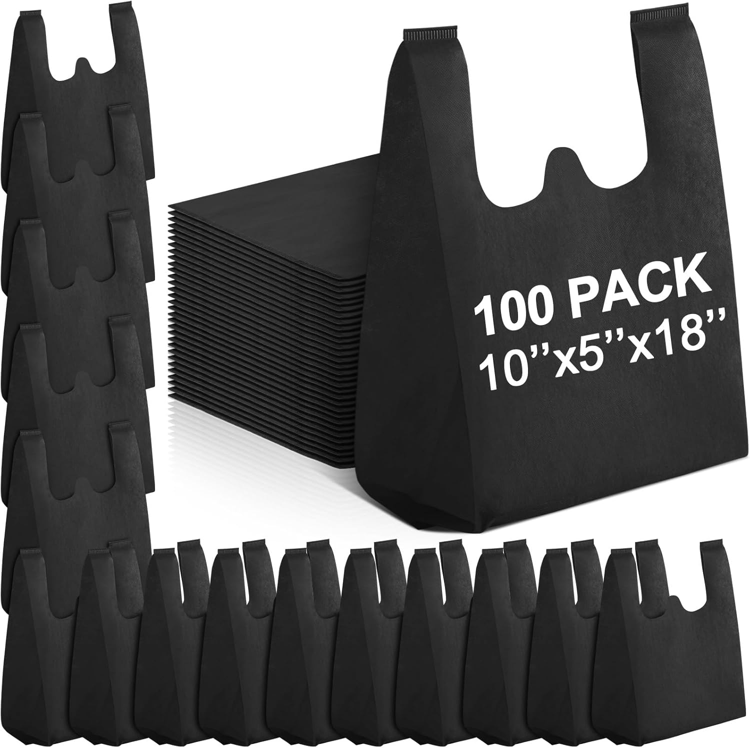 Windyun Reusable Grocery T Shirt Bags Bulk Small Non Woven Shopping Bag 10 x 18 x 5 Inch Foldable Tote with Handle Party Gift