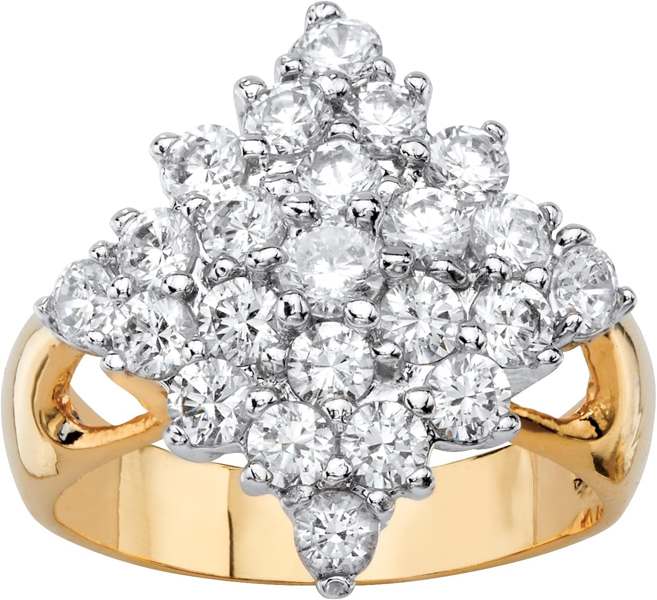 Palm Beach Jewelry PalmBeach Yellow Gold-Plated Round Cubic Zirconia Diamond Shaped Cluster Ring Sizes 6-10