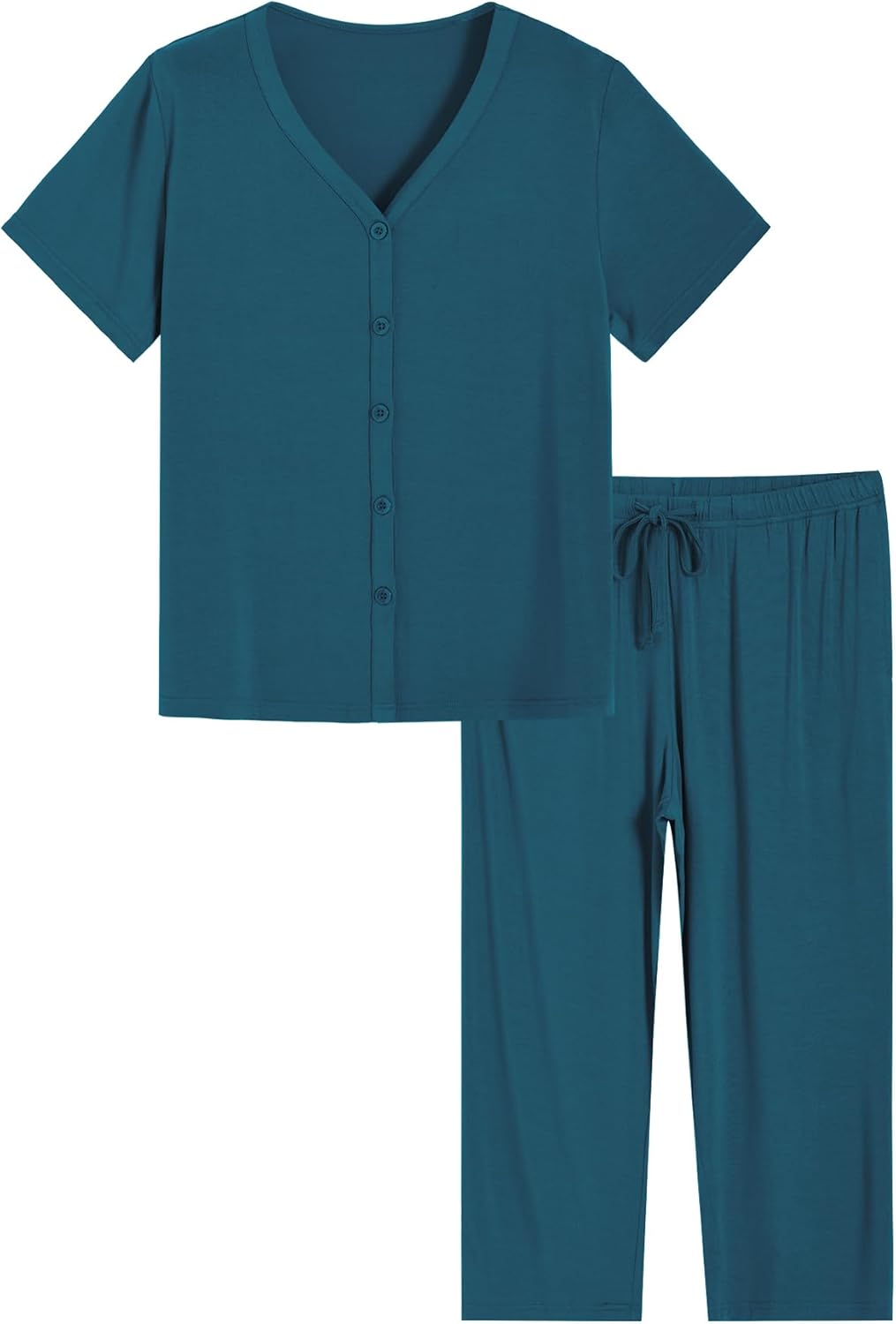 Latuza Women's Bamboo Viscose Capri Pajamas Set Cooling Pj Set with Pockets