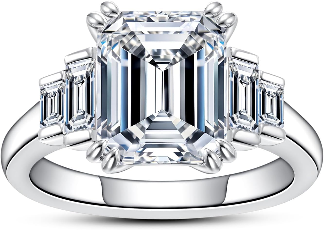 2CT-4CT Cubic Zirconia Oval Cut/Raidant Cut/Cushion Cut 3 Stone Engagement Rings 5A Grade Simulated Diamond CZ Wedding Promise Anniversary Rings for Women