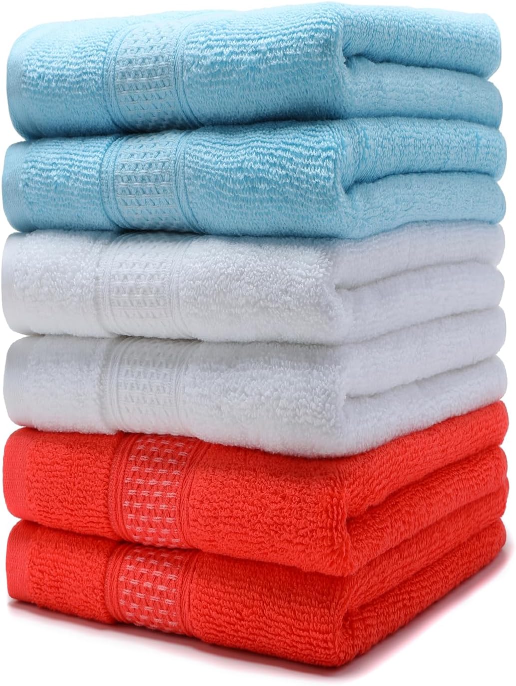 Weierduosi Cotton Hand Towels Set, 6-Piece Set(14in x 29.5in), Super Absorbent Quick Drying,Soft,Bathroom Towels,Suitable for Gyms,kitchen,Gift(Watermelon Red,White)