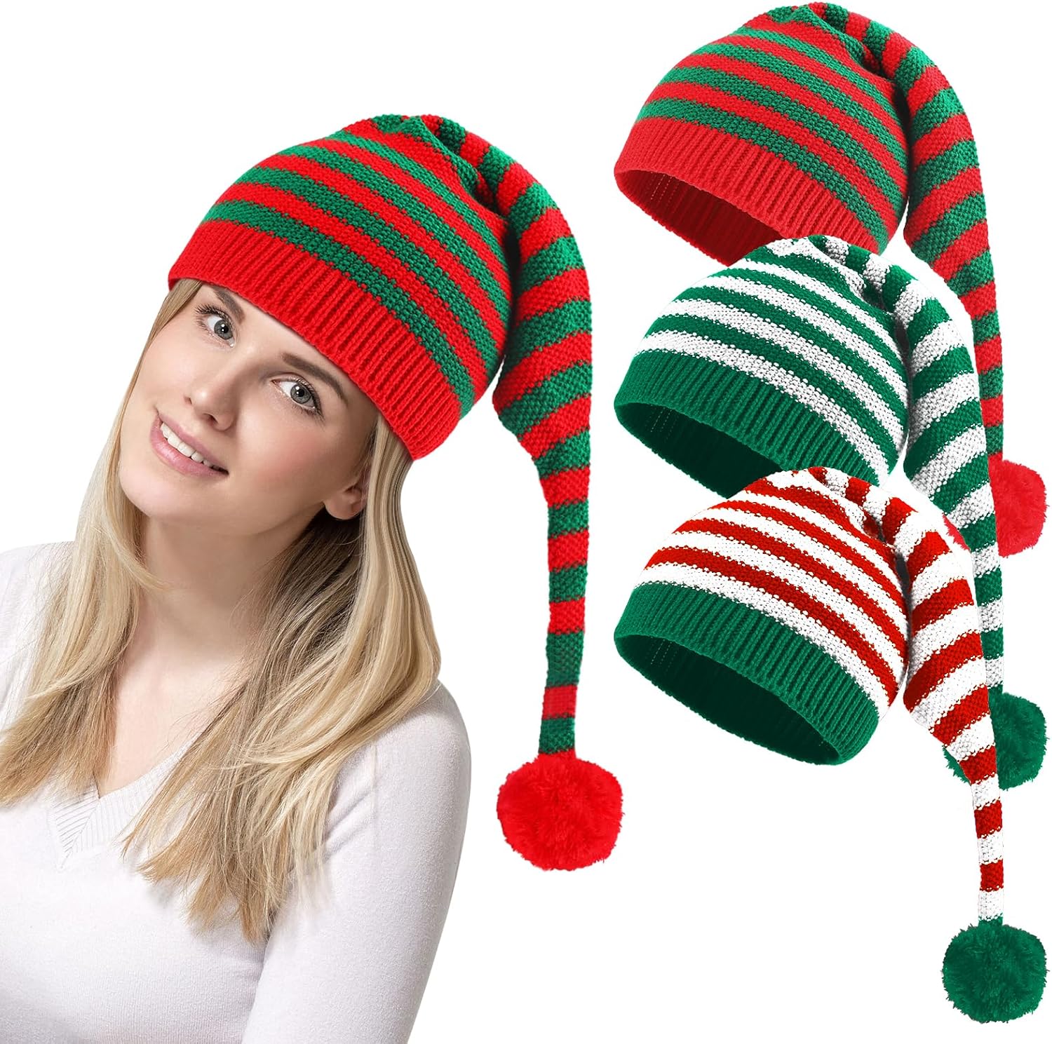 3 PCS Christmas Knitted Santa Hats for Women Kids Girl, Family Funny Beanie Hats Crochet Xmas Party Skull Caps Warm