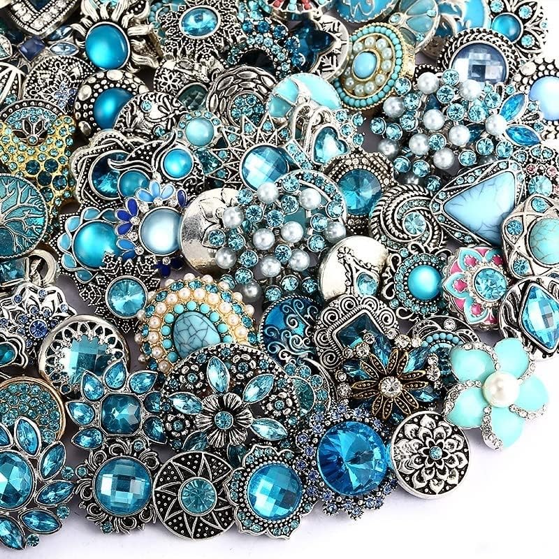 10PCs Mixed Style Rhinestones Snaps Jewelry Charms Buttons 18/20mm for Interchangeable Snaps Jewelry Making Women DIY Button Bracelets Necklaces Rings Brooch Accessories(Sky Blue)