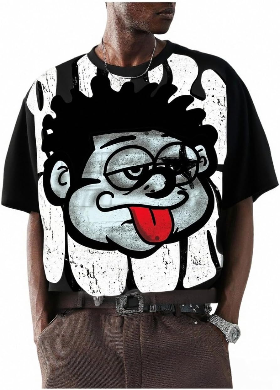 GORGLITTER Men's Anime Graphic Cropped Tee Shirts Baggy Boxy T-Shirt Short Sleeve Summer Casual Tops
