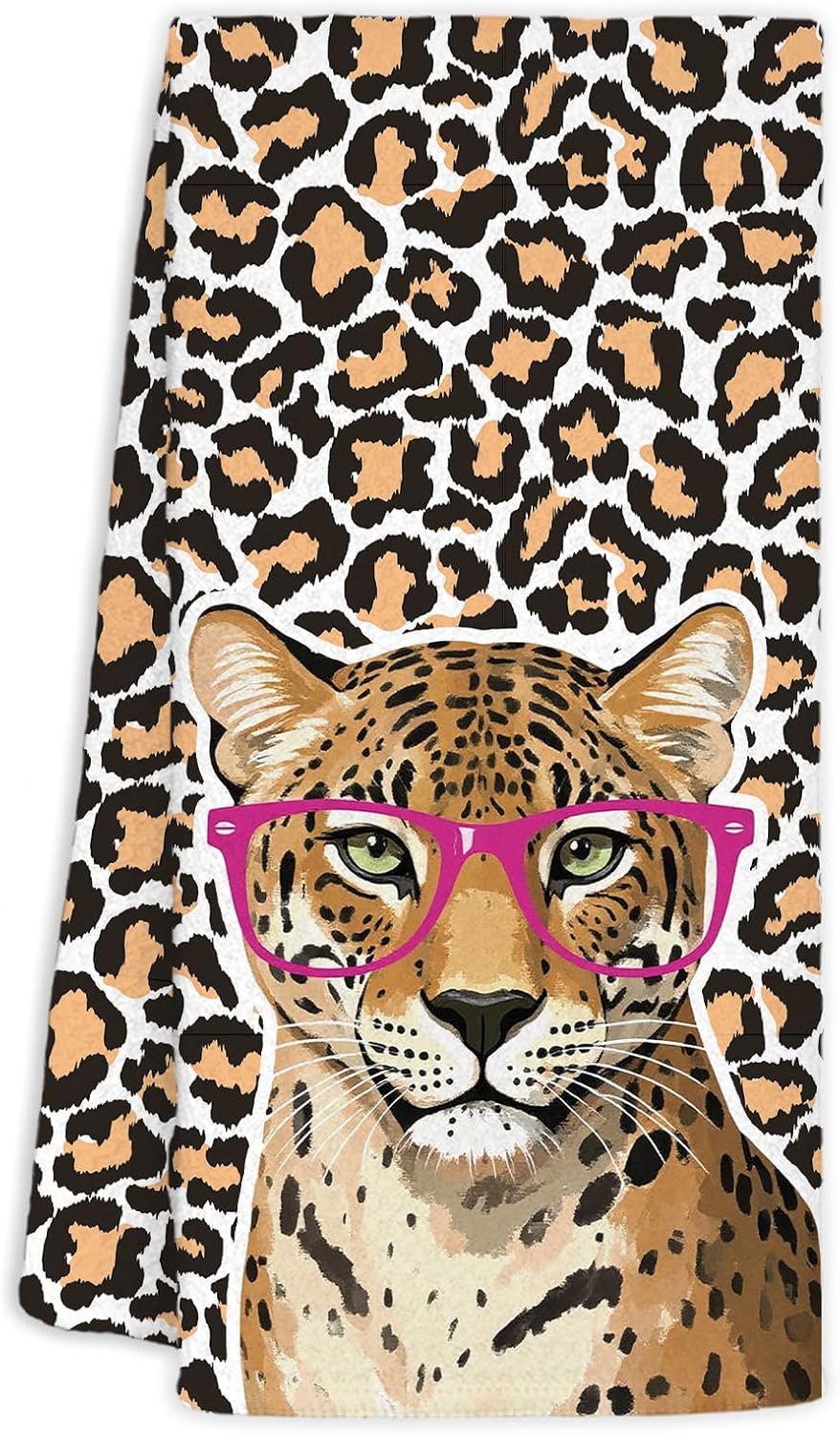 Leopard Print Tiger Kitchen Towel Decorative,Funny Tigers Gifts Dish Towels,Tiger Gifts for Women Pink Hand Towels Drying Cloth for Kitchen Bathroom Decor,16x24 Inch