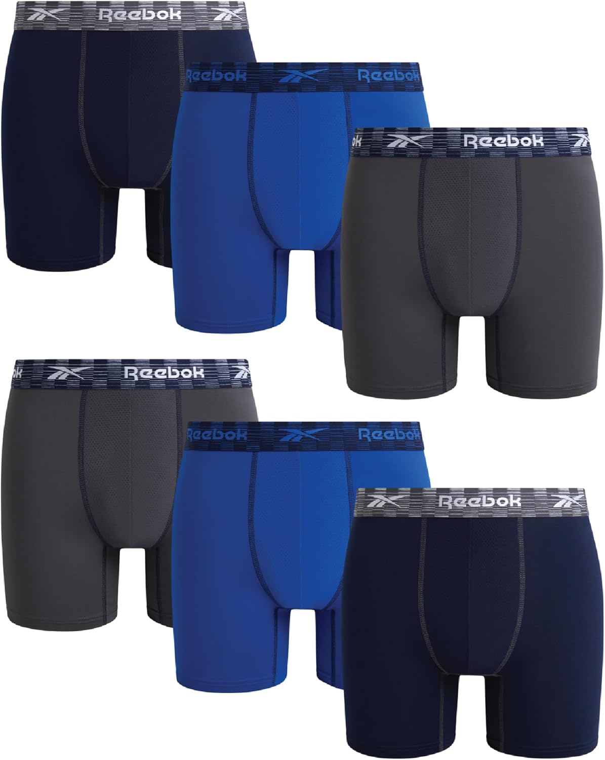 Reebok Mens Boxer Briefs - 6 Pack Athletic Stretch Moisture Wicking 6” Inseam Mens Underwear Boxer Briefs with Contour Pouch