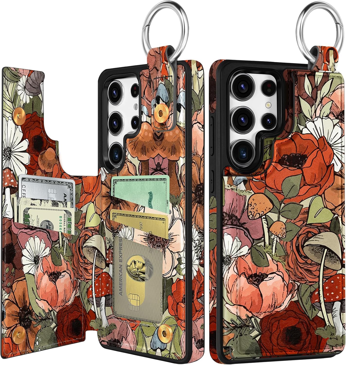 Shorogyt for Samsung Galaxy S25 Ultra Wallet Case - Cute Fashion Mogu Flower Design with Card Holder Kickstand for Magnetic Clasp Back Flip Folio Leather Phone Cases for Wome Girls Men