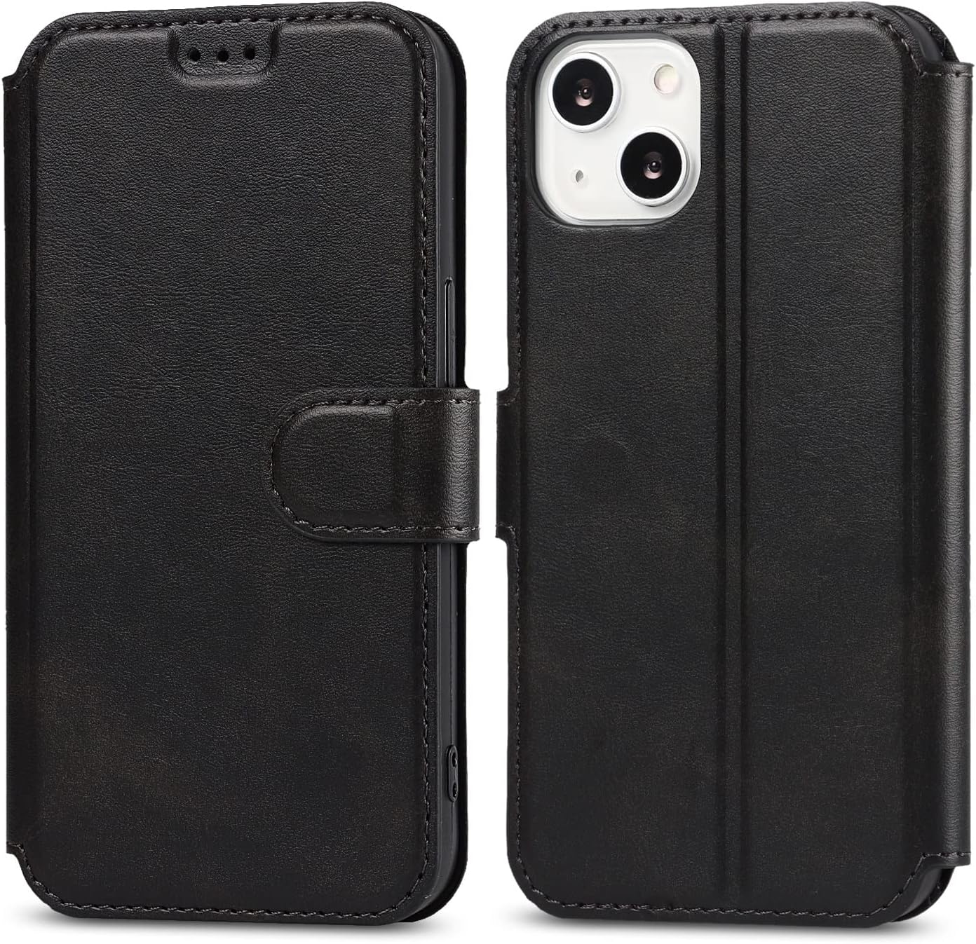 QLTYPRI Case for iPhone 13 Premium PU Leather Simple Wallet Case Card Slots Kickstand Magnetic Closure Shockproof Flip Cover for iPhone 13 6.1 inch - Black