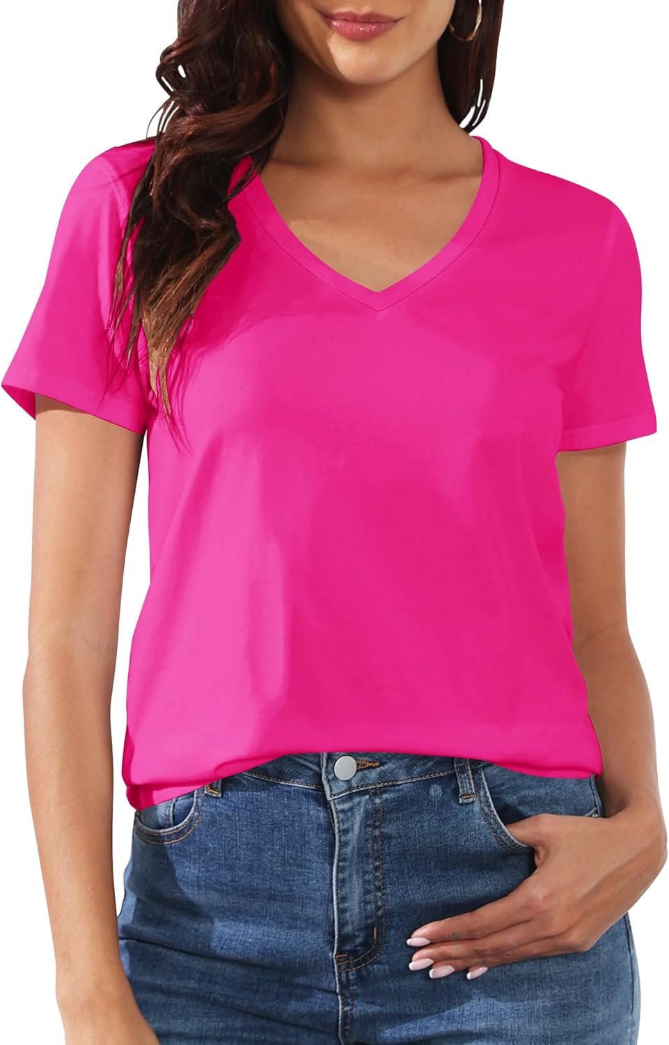 PALINDA Women's Classic Fit T Shirts Short Sleeve V Neck Casual Tee Shirt Summer Tops