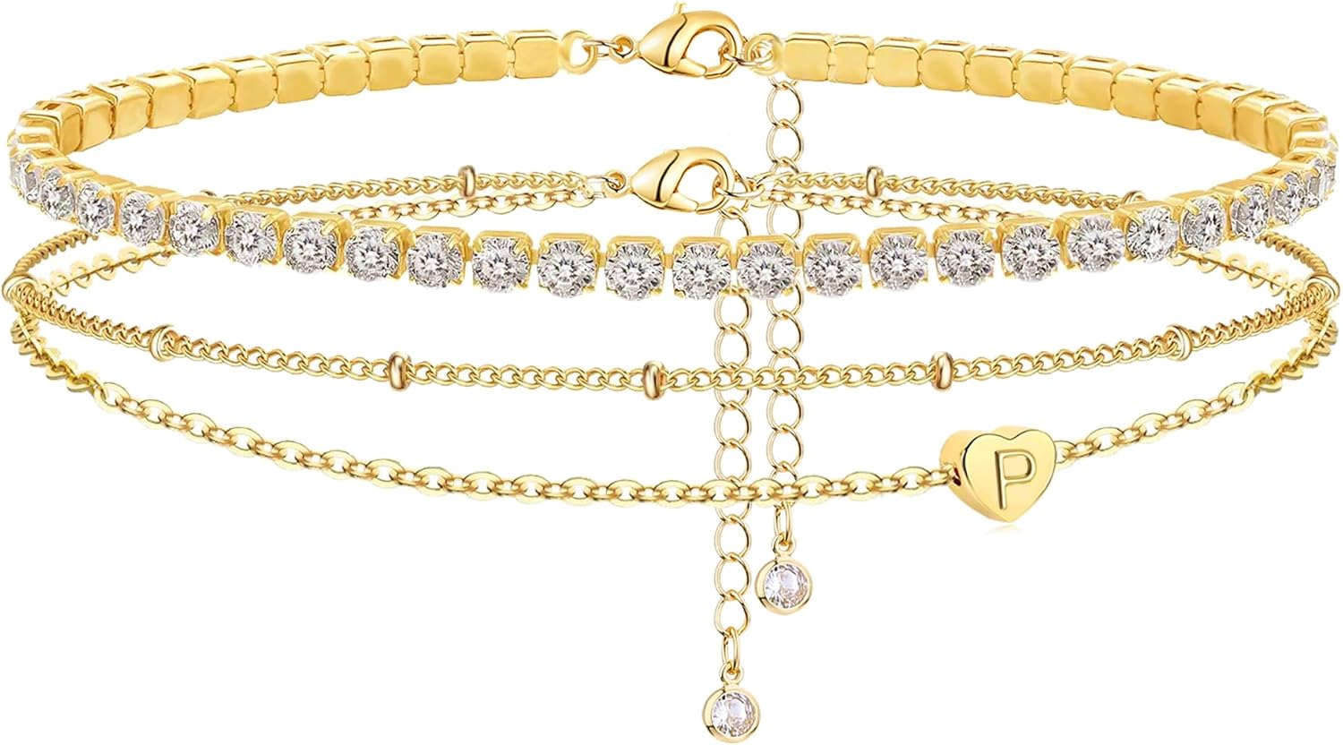 Yanoda Initial Ankle Bracelets for Women, 14K Gold Plated Waterproof Dainty Layered Heart Letter Initial Anklets Personalized Gifts