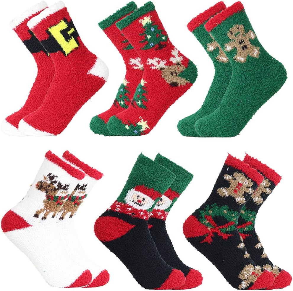 Women Christmas Fuzzy Socks - Fluffy Winter Warm Cozy Striped Crew