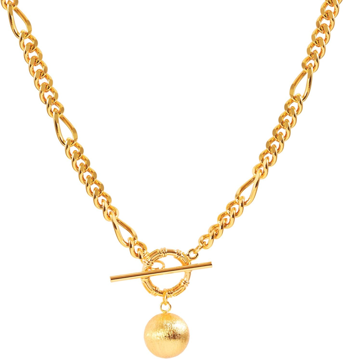 Charm Necklace for Women, Gold Puffy Heart Ball Pendant Necklace Chunky Gold Heart Necklace for Women 18K Gold Plated Cuban Link Chain Necklace Fashion Necklaces for Women