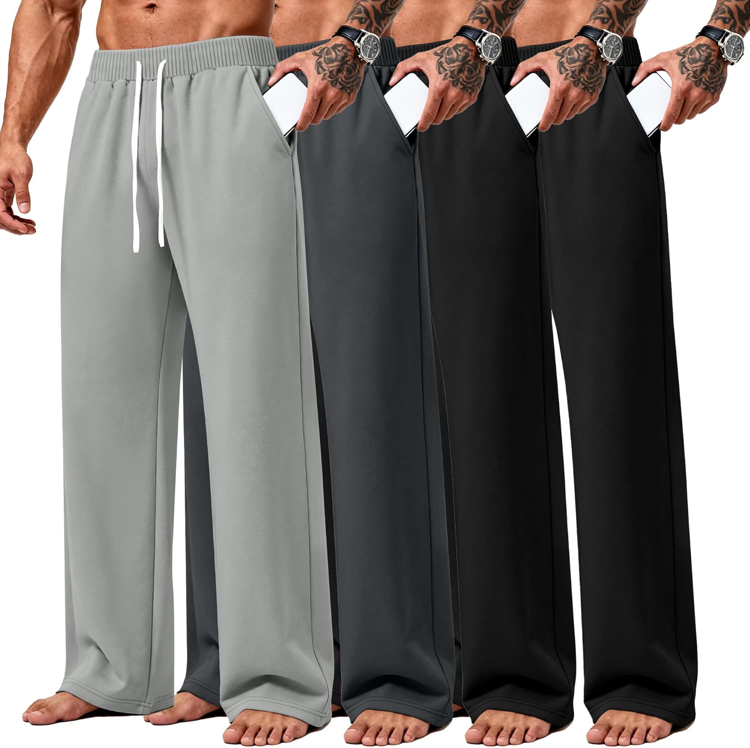 4 Pack Big and Tall Men's Sweatpants Open Bottom Joggers Elastic Waist Drawstring with Pockets Athletic Pants