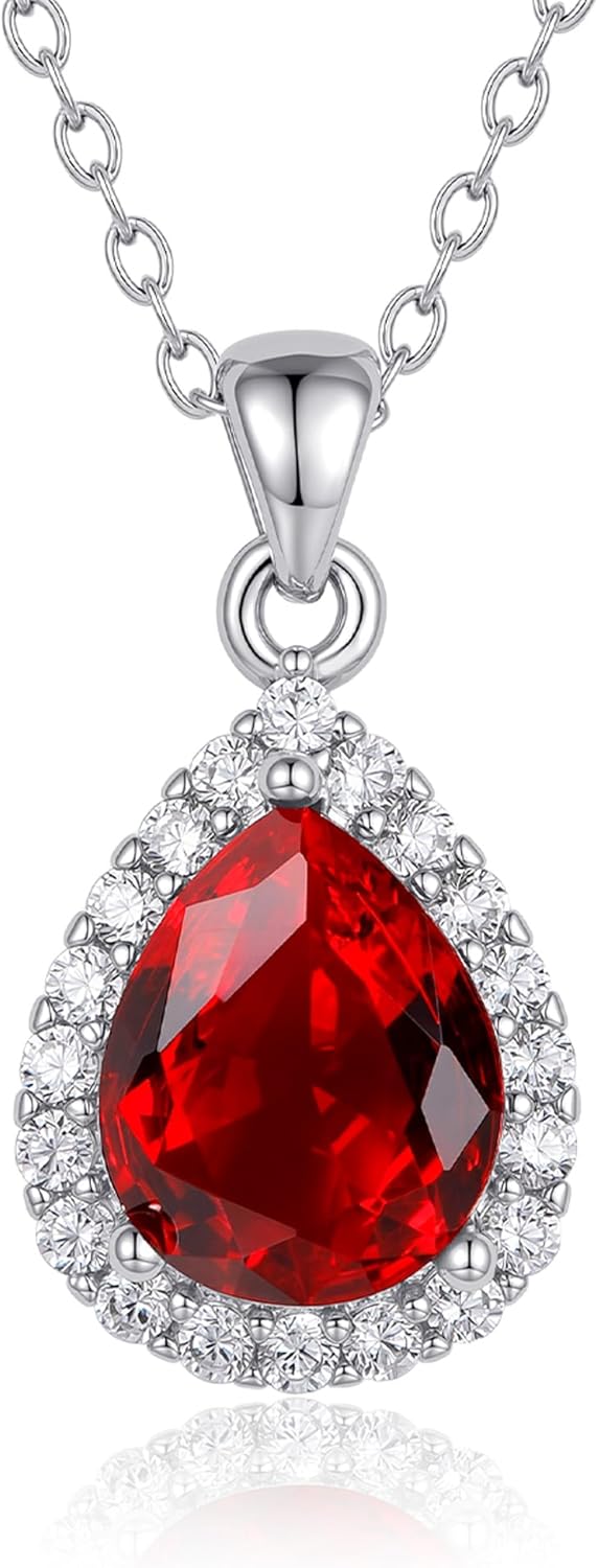 Lolitta Valentine's Day anniversary Birthday Gifts, Ruby Red Teardrop Pendant Necklaces For Women, 18K White Gold Plated 18+2 Inch Adjustable Chain, Dainty Jewelry Rose Gifts Set, For Women Mom Her