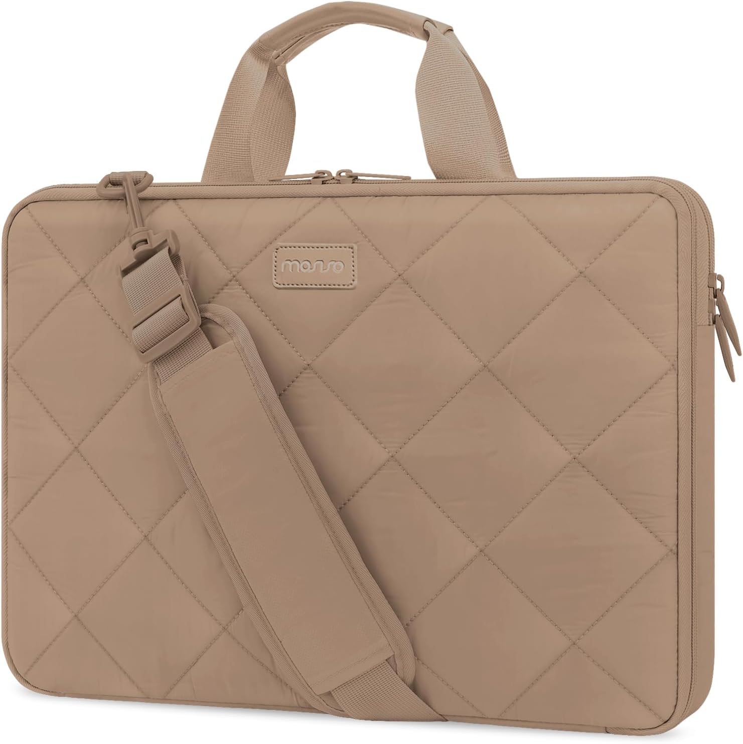 MOSISO 360 Protective Laptop Shoulder Bag, 15-15.6 inch Double Layer Fluffy Padded Laptop Bag with Anti-theft Zipper Compatible with MacBook Pro 16 inch, HP, Dell, Lenovo, Asus Notebook, Taupe Brown