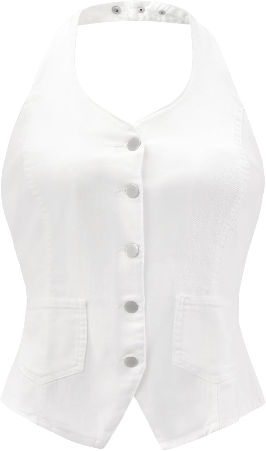 Allegra K Denim Vest for Women's Halter Neck Button Down Backless Jean Waistcoat