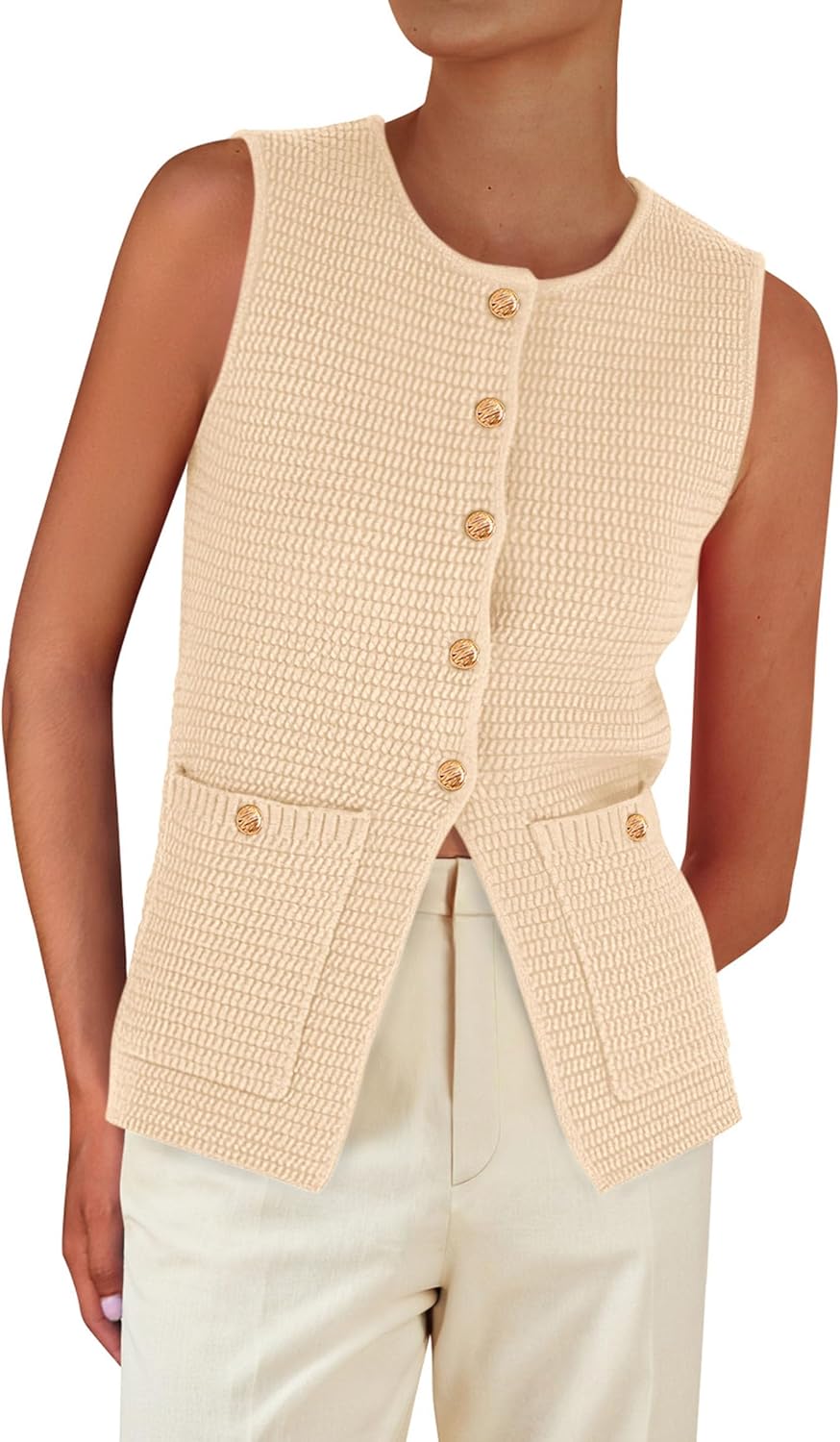PRETTYGARDEN Women's 2026 Spring Sweater Vest Sleeveless Button Down Knit Cardigan Tank Tops Summer Business Casual Outfits