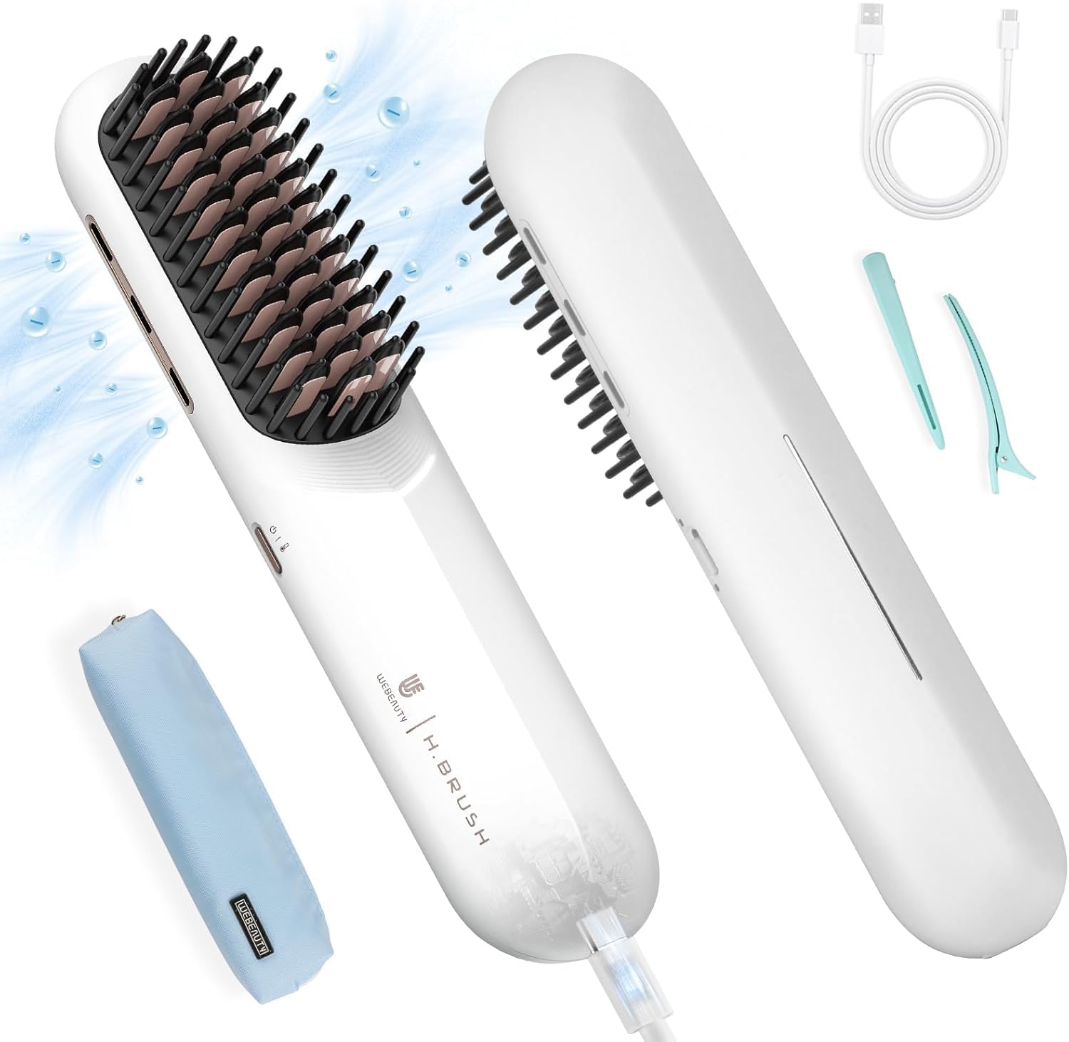 ![Cordless Hair Straightener Brush - [200M Negative Ions] Webeauty Portable Straightening Brush for Women, Fast Heating Straightener Mini Travel Europe Dual Voltage Car Outdoor USB Rechargeable, White](https://m.media-amazon.com/images/I/617Ua3ECp7L._AC_SL1500_.jpg)