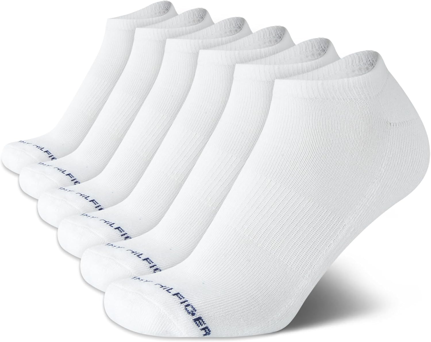 Tommy Hilfiger Mens No Show Socks - 6 Pack Cushioned Performance Stretch Athletic Low Cut Socks for Men
