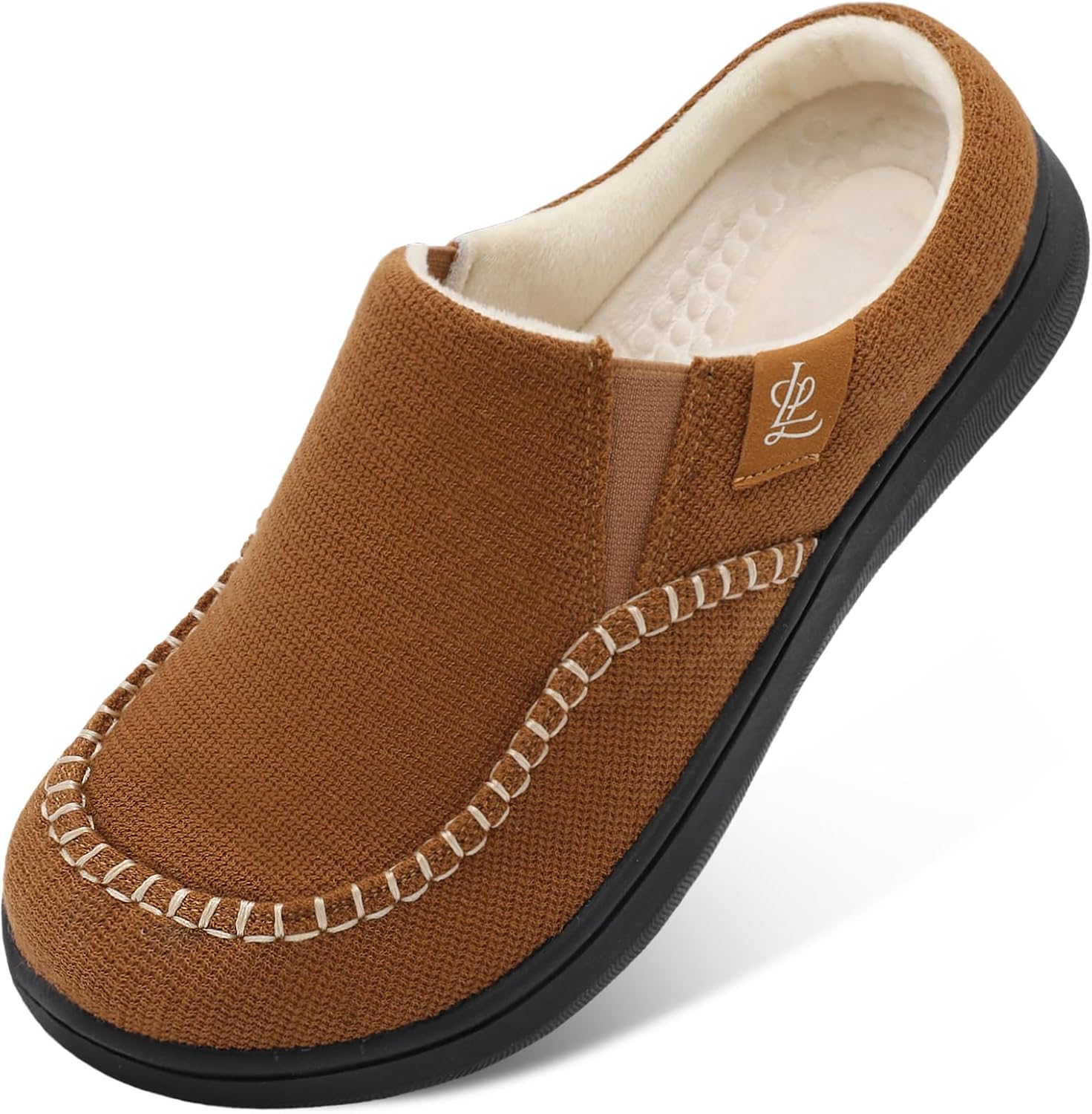 LeIsfIt Men's Slippers Wide House Slippers Moccasins Home Bedroom Slipper Slip-on House Shoes with Rubber Sole for Indoor Outdoor