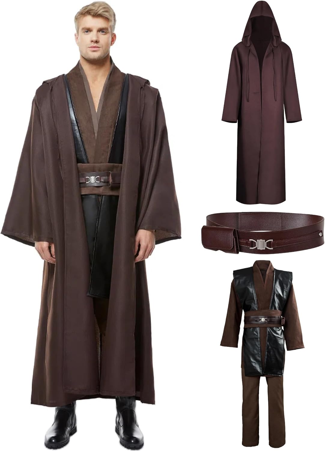 Knight Costume Adult Men Tunic Robe Master Cosplay Pants Belt Cloak Accessories Outfit