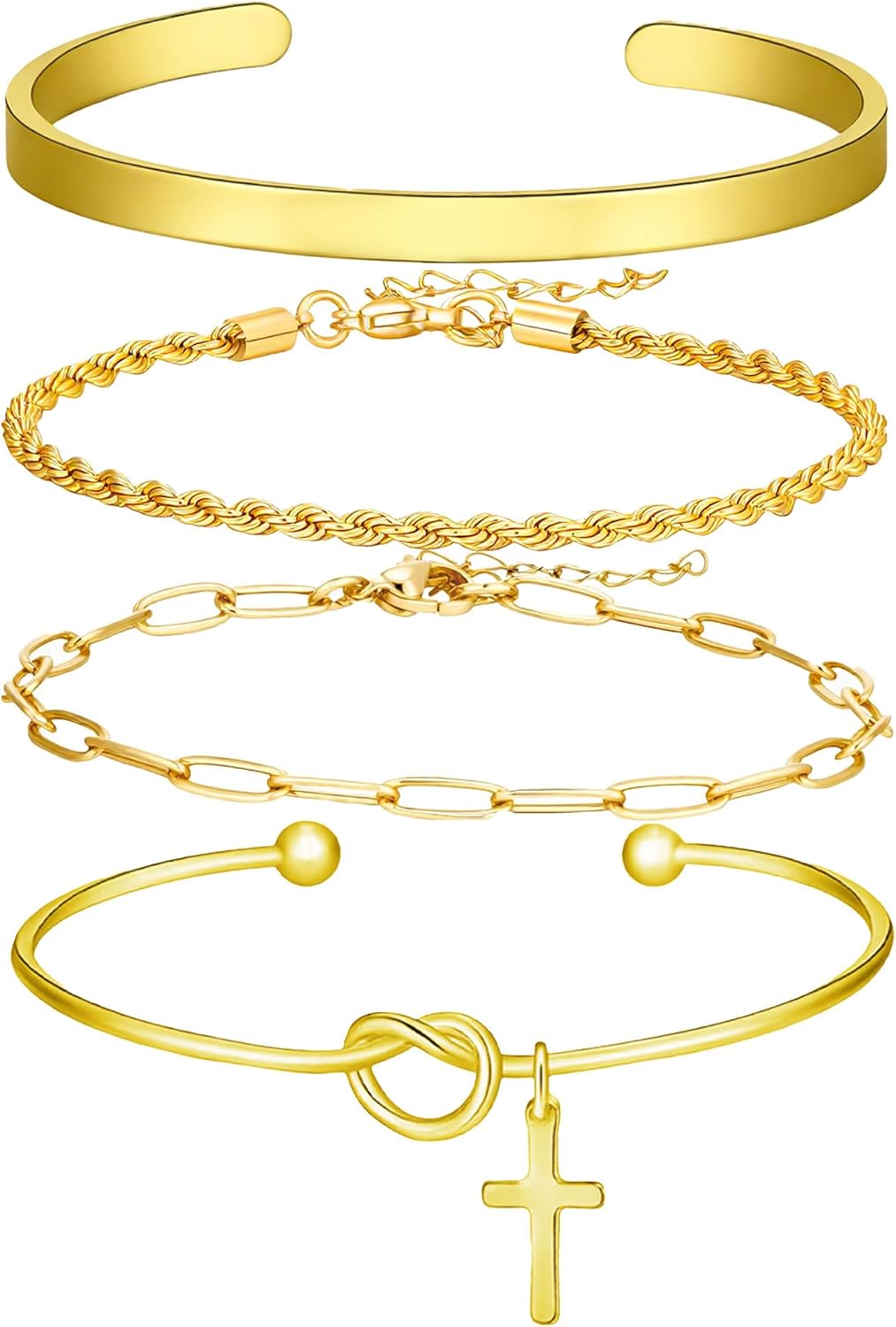 Gold Bracelet Stack for Women 14K Gold Plated Bracelet Stack Silver Jewelry Set Stackable Gold Jewelry Gold Bracelet