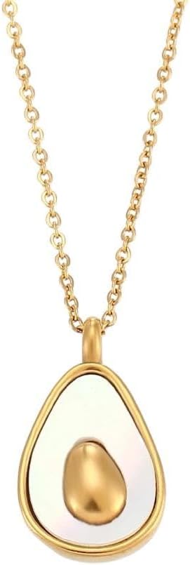 18K Yellow Gold Plated Stainless Steel Avocado Pendant Necklace With 15.5 inch Cuban Link Women's Jewelry Gift Nickel Free Hypoallergenic Waterproof
