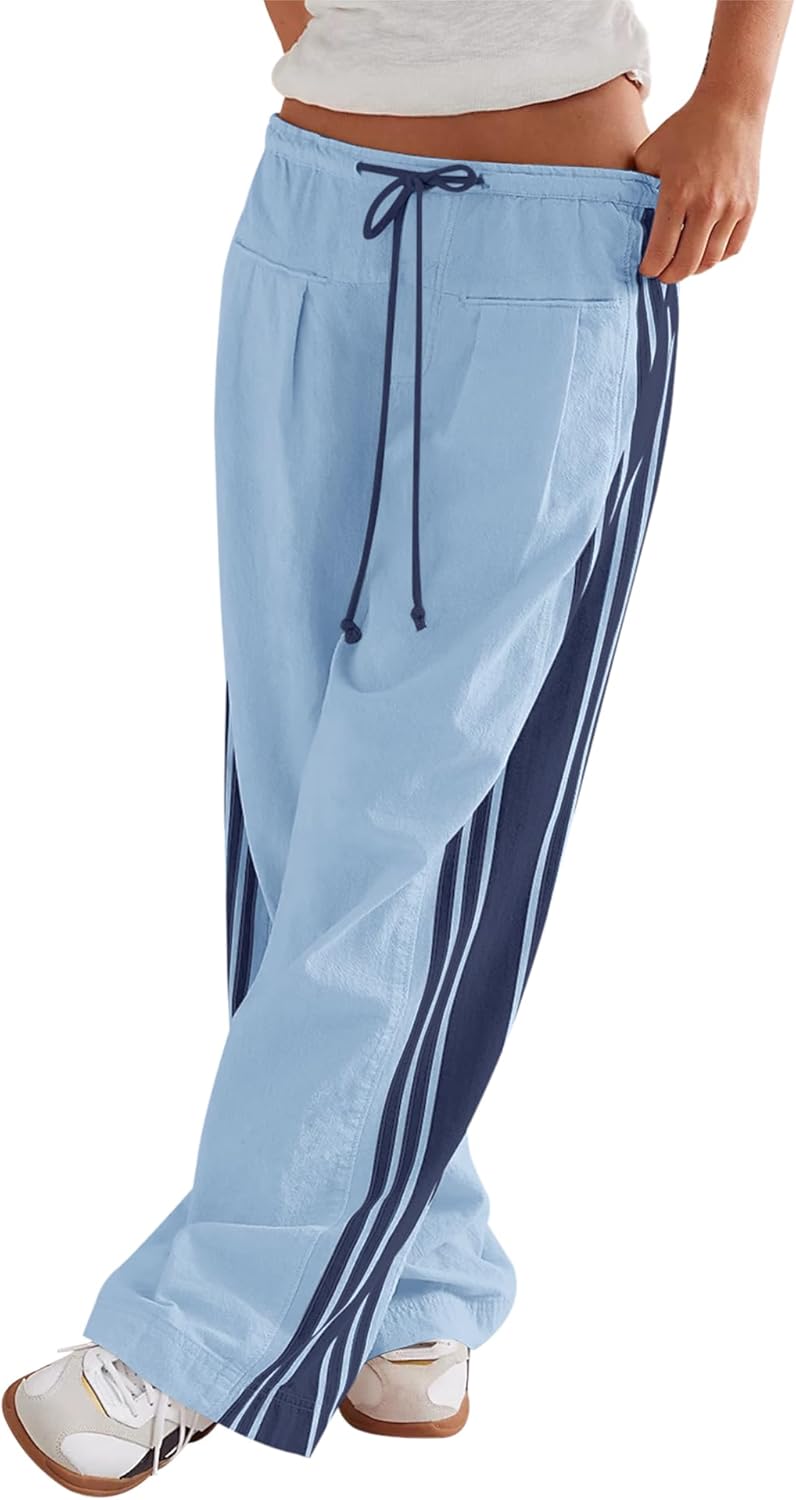 LOMON Pants for Women Wide Leg Side Striped Pants Drawstring Baggy Palazzo Work Trousers with Pockets