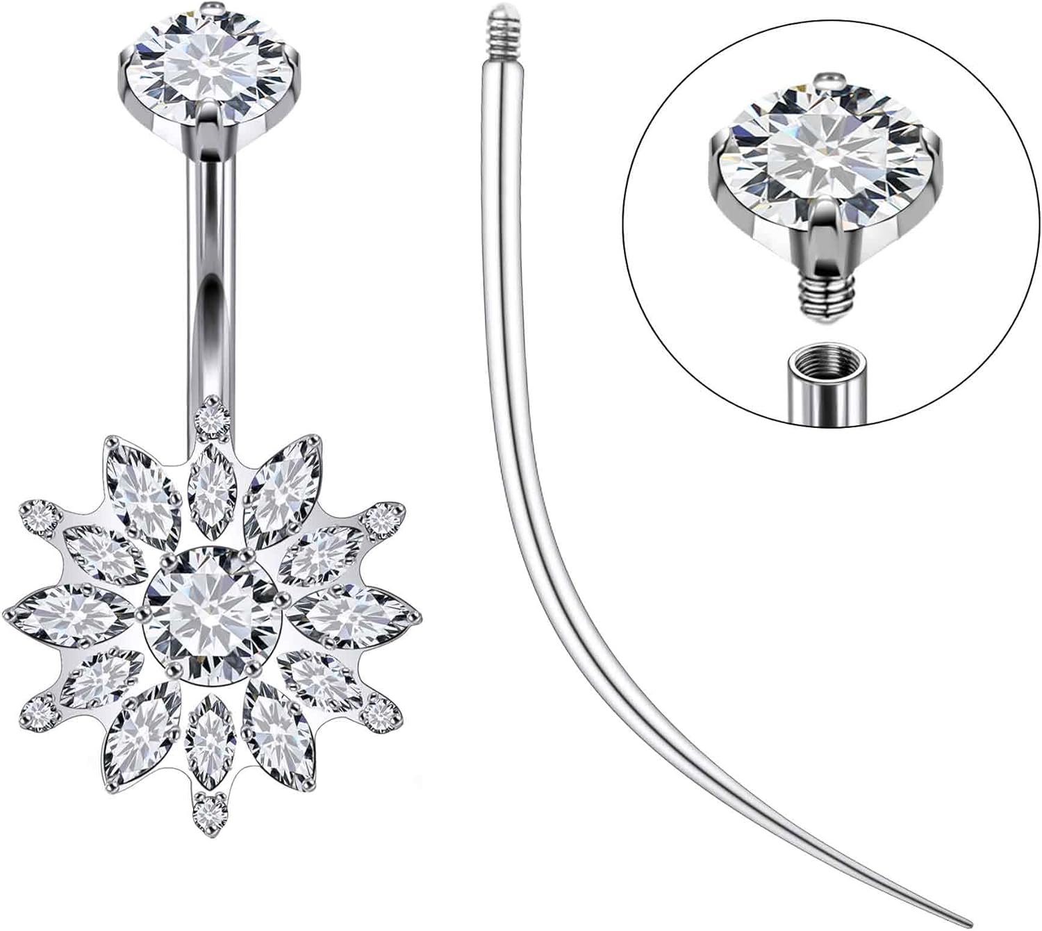 Ruifan ASTM F136 Titanium Belly Button Rings Flower Cubic Zircon Hypoallergenic Internally Threaded 14G Navel Body Piercing Jewelry 10mm 12mm 14mm For Women