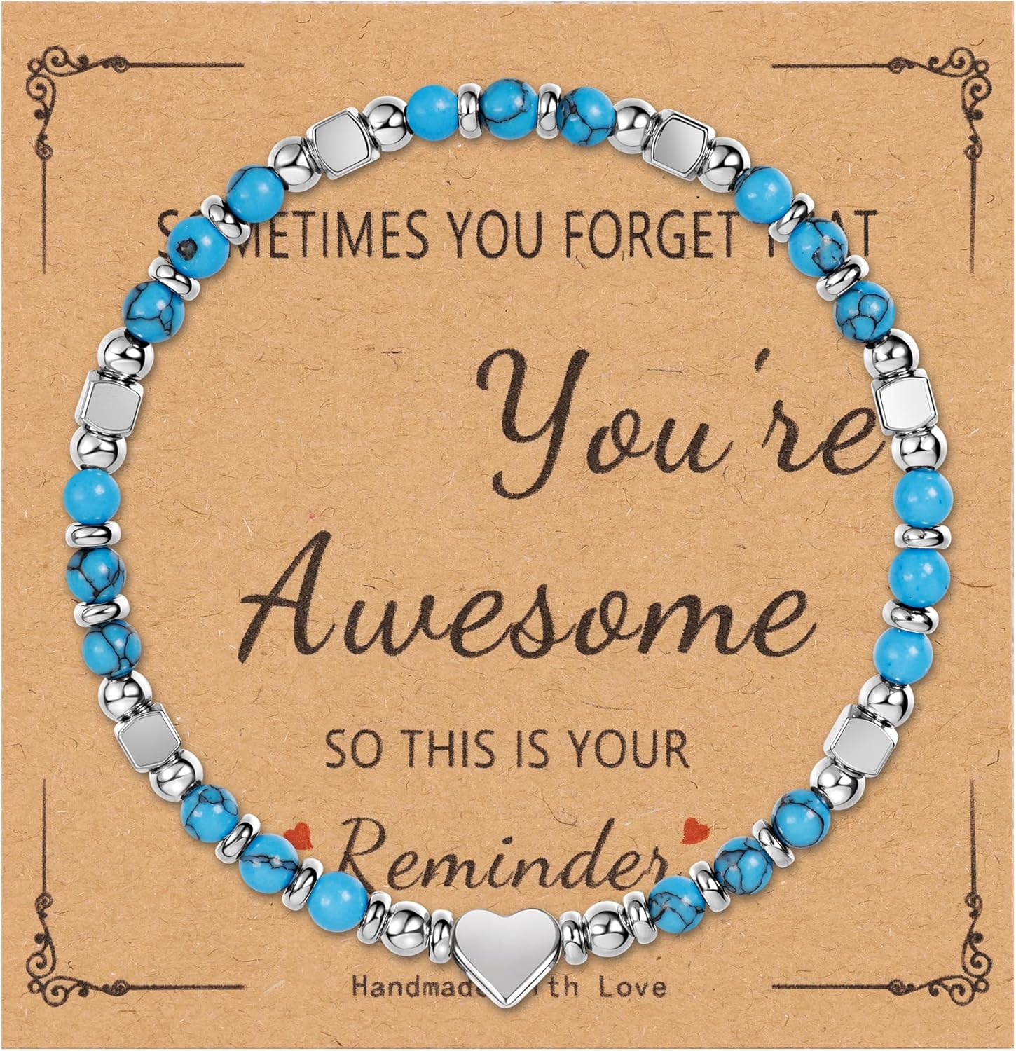 Tiny Natural Stone Beaded Bracelets for Women Sometimes You Forget You're Awesome Inspirational Gifts Bracelets Mothers Day Graduation Christmas Birthday Gifts for Mom Friend Sister