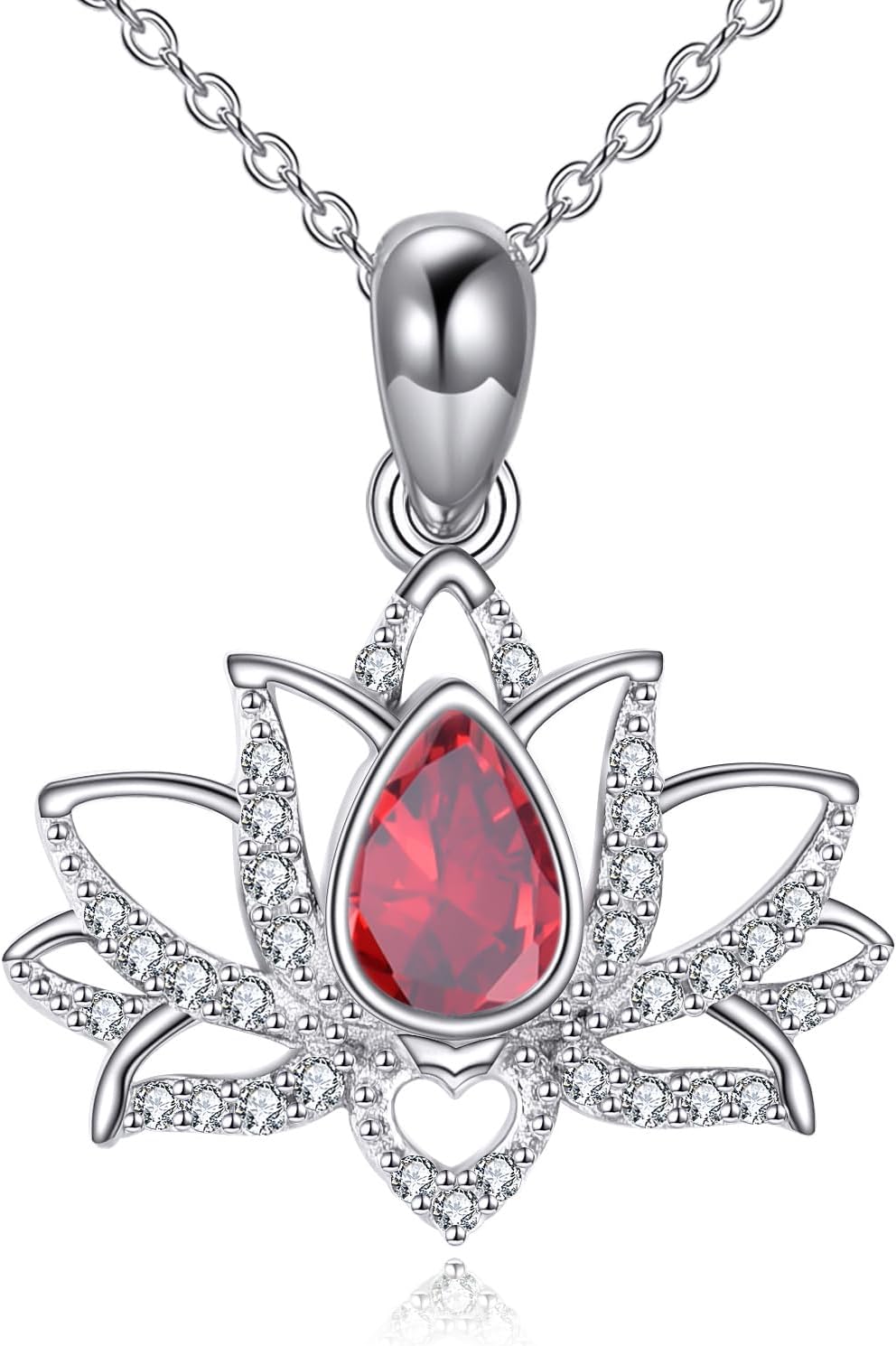 YAFEINI Lotus Necklace Sterling Silver Birthstone Pendant Lotus Jewelry Mothers Day Birthday Gifts for Women