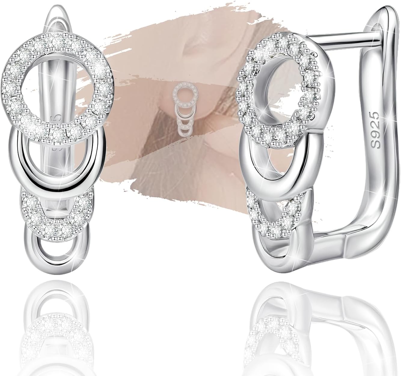 Sterling Silver Trendy Halo Earrings Dainty Huggie Hoop Cubic Zirconia Earring White Gold Plated Hypoallergenic Jewelry Fashion Birthday Gift for Women