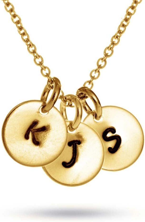 EVE'S ADDICTION Gold Personalized Hand Stamped 3 Charm Initial Necklace - Gifts for Mom