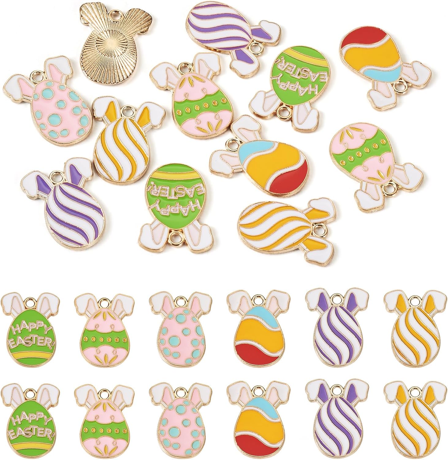 12Pcs Easter Charms Enamel Easter Egg Bunny Pendants Colorful Metal Alloy Charms 6 Styles 22x17x1.5mm for Bracelet Necklace Earring Jewelry Making