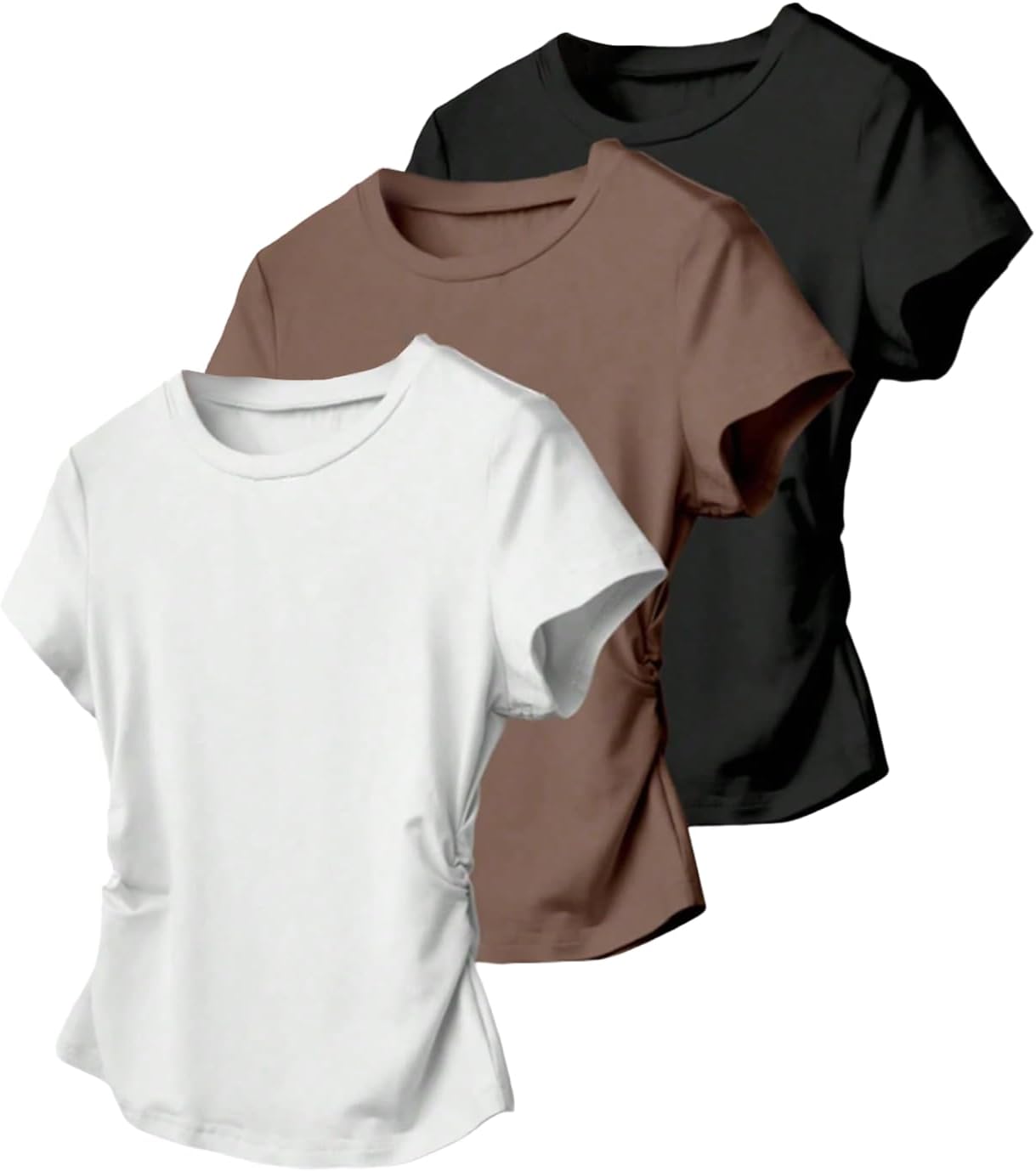 Women's 3 Packs Basic T Shirts Short Sleeve Crewneck Ruched Tops Fitted Casual Summer Top Tees