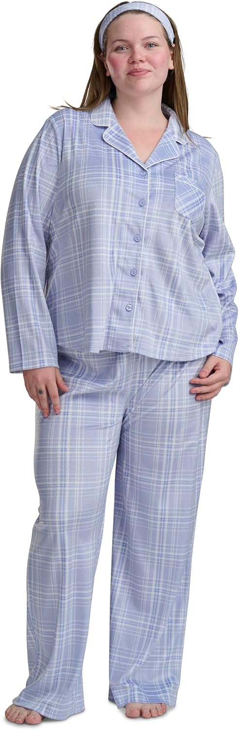 Karen Neuburger womens Plus Size Long Sleeve Minky Fleece Notch Collar Top and Pant Pajama Set With Matching Headband