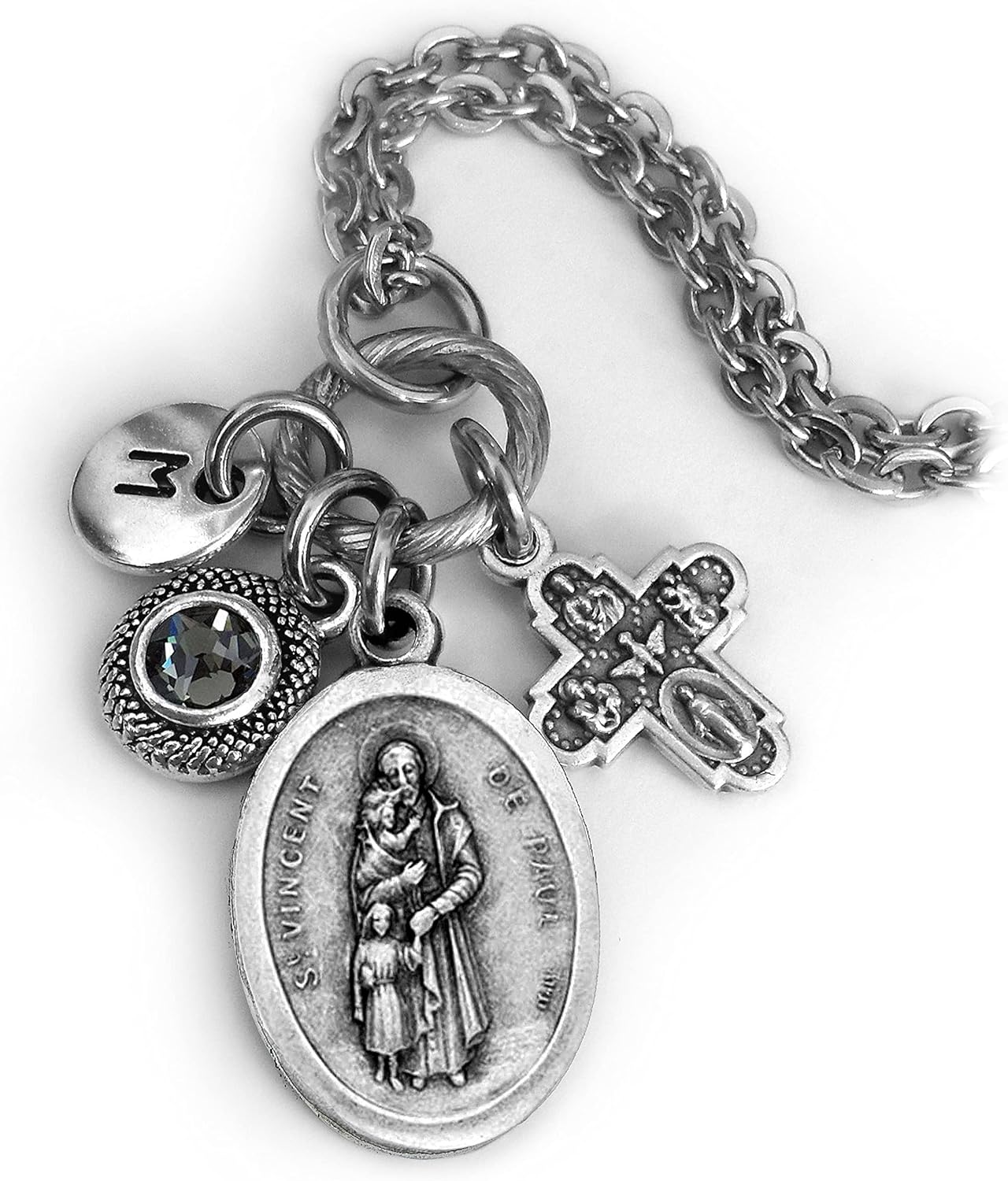St. Vincent de Paul Necklace, Keychain or Clip, Patron Saint Confirmation Gift, Crystal Pendant and Initial Charm