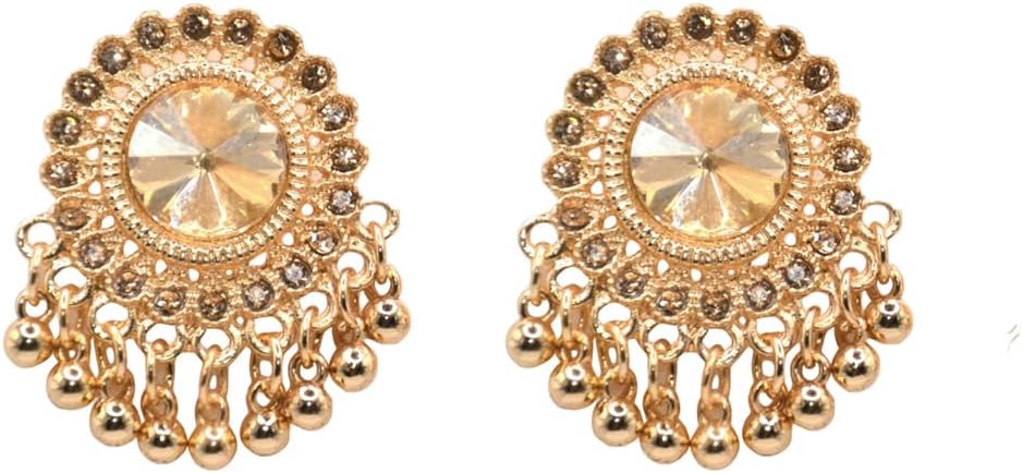 Vintage Round CZ Beaded Tassel Statement Dangle Drop Earrings for Women Gold Plated Sparkly Crystal Ethnic Retro Style Indian Chandelier Dangling Stud Jhumka Festival Trendy Jewelry
