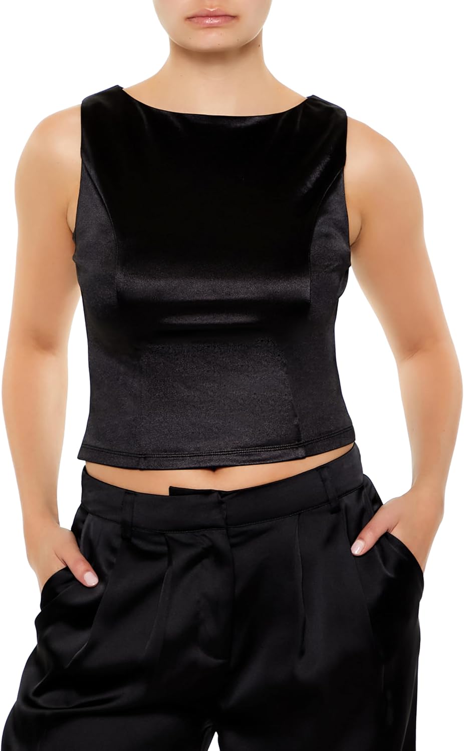 Forever 21 Women's Sleeveless Satin Tank Top Black