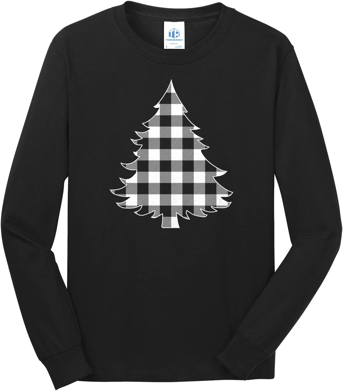 Threadrock Men's White Plaid Christmas Tree Long Sleeve T-Shirt
