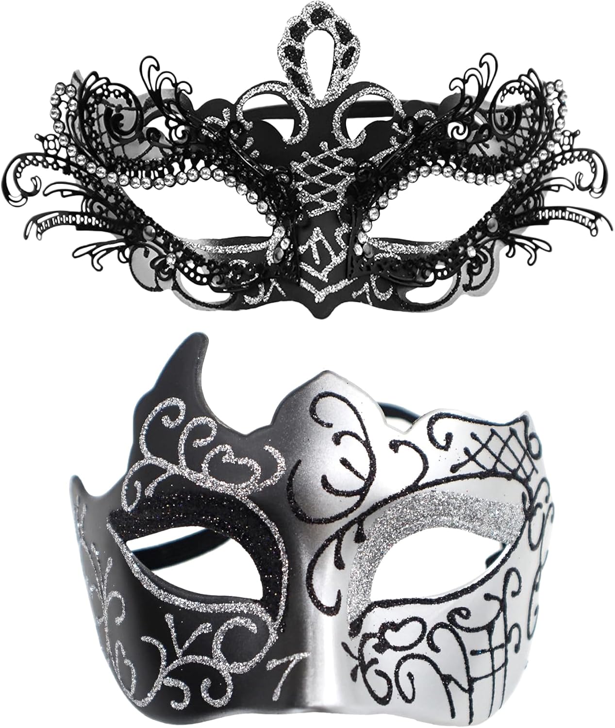 OIDEA Masquerade Mask Couples Set: Rhinestones Metal Cosplay Venetian Party Mask Halloween Costume Mardi Gras