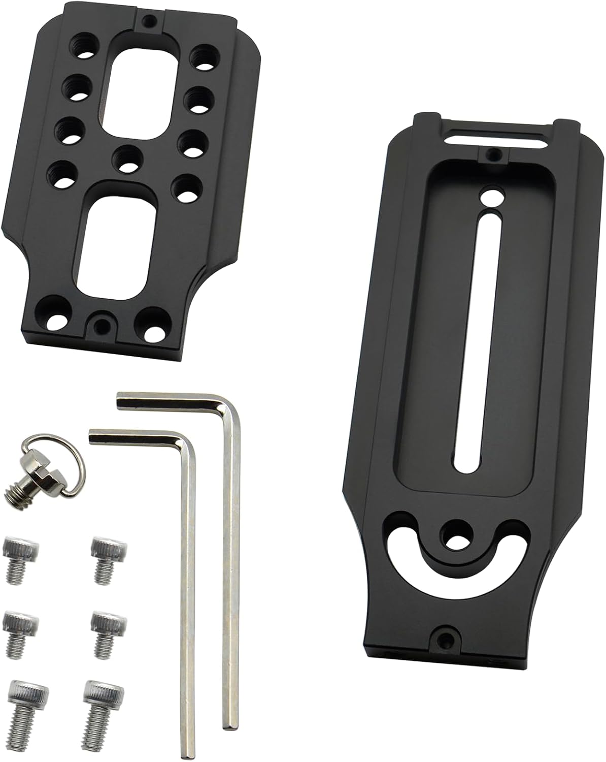 - Package includes: 1pcs DSLR Camera L Bracket, 1pcs 2.5mm hexagonal wrench, 1pcs 3mm hexagonal wrench, 4pcs M3 screw, 1pcs M4 screw and 1pcs 1/4" camera screw