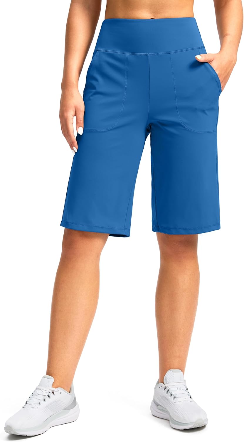 G Gradual Women's Bermuda Shorts 12" Knee Length with Pockets High Waisted Stretch Long Shorts for Women Casual Walking
